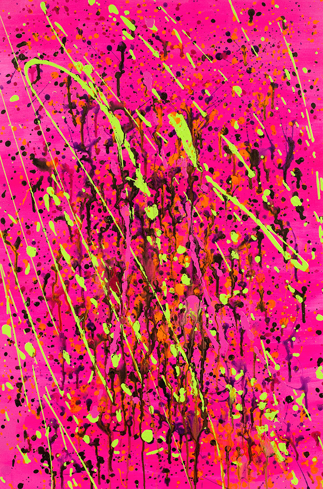 Neon Splatter - Acrylic Painting, 24" x 36", 2017